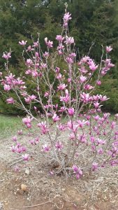 Click on the image to blow it up. This picture was taken a couple of years ago, but the shrub is hardly bigger now. I should have posed a dog beside it so you could get the best possible idea of its size. Definitely my smallest magnolia, and I don’t expect it ever to catch up even to ‘Ann.’