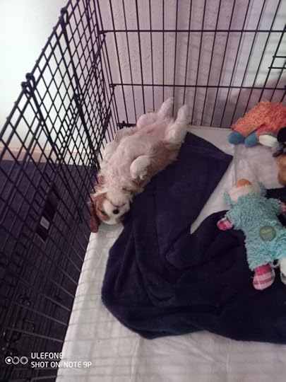 Finally the big puppies are ready to fall asleep and I put them in the playpen and THEN I can go on with my normal morning.