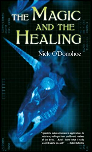 If you like novels with a medical emphasis, by the way, one that is far less well known than it should be is Nick O’Donohoe’s novel The Magic and the Healing, about a veterinary student who finds herself on a rotation caring for mythological creatures, centaurs and unicorns and of course who could forget the amazing griffin, probably my favorite griffin in all of fantasy literature. What a great book this is. I’m biased because (a) the griffin, and (b) I like medical stuff very much, and (c) this is the single novel that clarified for me how to write a character who is intelligent and perceptive. I mean, as opposed to the author just declaring the character is intelligent and perceptive. BJ really is, and this is indicated without the author making any assertions or being at all heavy-handed about it. I think O’Donohoe was an important influence on me when it comes to this kind of characterization.