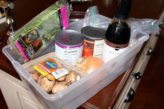 So, it's a little thing but the bin system (I haven't made up a fancy name yet...) is working out wonderfully for me. I even called Todd the other day to ask him to get started on dinner and told him to just grab it out of the fridge and follow the directions. He called me back 15 minutes later and told me he thought I was a genius. So, you can make great food and be called a genius.