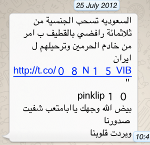 أما الرسائل الأكثر خطورة وإزعاجاً لي شخصياً، هي تلك العنصرية، والتي لا يمكن أن يكون لها إلا أثر سيء على لحمتنا الوطنية في بلادنا أولاً، وعلى الأمة الإسلامية ثانياً، وهي تلك التي تفوح منها رائحة الطائفية النتنة. فمن بين عشرة رسائل تصلني، فإن هناك ربما أربع منها على الأقل، تحمل شتماً أو قدحاً أو سخرية أو تكفيراً لأخوتنا أبناء الطائفة الشيعية، هذا بالرغم أنني لا أعلم عن معارفي التطرف ولا حتى الاهتمام بهذه الأمور، إلا أن لعنة التمرير الأعمى للرسائل قد أصابتهم، فأصبحوا يمررون كل ما يصل لهم سواء عن قناعة أو من باب ” لا تجعلها تقف عندك”. وكلما ازداد الوضع السياسي سوءاً في المنطقة كما هو الحال في سوريا، أو كلما كانت هناك تحديات أمنية في القطيف، فإن حدة ووتيرة هذه الرسائل ترتفع وعددها يزداد، وكأن من يفعلون ذلك يدافعون عن شعب سوريا، أو يؤكدون ولائهم للوطن.