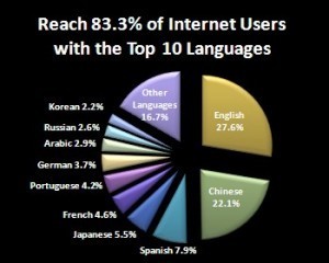 فحسب موقع (حالة الإنترنت في العالم – آخر تحديث يونيو ٢٠١٠) فإن اللغة الإنجليزية تحتل المركز الأول عالمياً بالنسبة لعدد المستخدمين تليها الصينية ثم الأسبانية، في حين تحتل اللغة العربية المركز السابع (بنسبة ١٨.٨ ٪) متقدمة على الفرنسية ومتأخرة عن كل من اليابانية والبرتغالية والألمانية على التوالي. أما لجهة المحتوى العربي على الشبكة فهناك اختلاف في نسبته لدى أكثر من جهة، فهناك من يضعه في موقع ضعيف جداً يقل عن ١ ٪ وآخرون يرون بأنه يصل في أحسن الحالات إلى ٥ ٪.