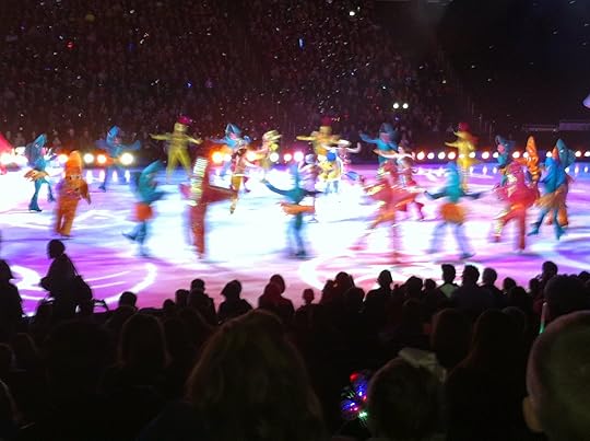 It was awesome. My husband and I have been gone a lot lately, so the kids were excited to be spending time with us. The train delivery of our food was just cool. We smiled. We laughed. We even let the kids get light up toys for the performance. We were just happy to be together. And even my 11-year-old was loving the ice skating.