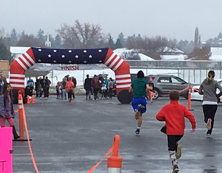 This was the Veteran’s Day run we participated in. I love the symbolism here of people running toward the finish. Of working hard, giving it their all, and then finishing together with people they may not personally know, but who are now considered friends and compatriots for having struggled together.