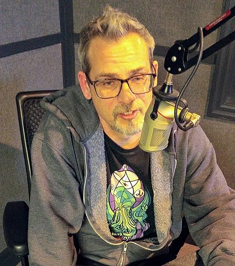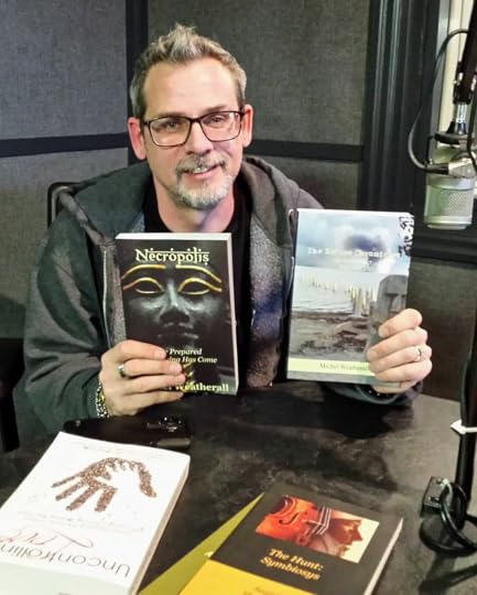 And there Dylan is holding a copy of Thomas Jay Oord's "Uncontrolling Love", me on the radio, and finally, me hold copies of Necropolis and The Refuse Chronicles.