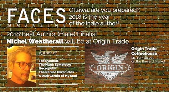 Ottawa's Best Author (Male) 2018: Michel Weatherall brokenkeypublishing@gmail.com http://facesmag.ca/awards/ We at Broken Keys Publishing are proud to announce our very own Michel Weatherall as a finalist for Ottawa Faces Magazine's 2018 Best Author (Male) Voting will take place from January 3rd to January 24th. You can vote once per day per IP address. Go to http://facesmag.ca/awards/ and cast your vote for Best Author (Male) Name: Michel Weatherall email: brokenkeypublishing@gmail.com (Don't forget to scroll to the bottom of the page and enter your name and email, and then hit the "nominate" button!" With no affliiations or memberships with any local literary guilds, writers' groups or societies, this rogue author is definitely a dark horse candidate! Entering Ottawa's literary scene in early 2015, Weatherall has taken the city by storm! Publishing 2 novellas, 2 novels, a collection of poems, and a theological essay all within this short window of 3 years! He has been awarded a certificate of acknowledgement by mayor Jim Watson and his books has graced the shelves of Chapters, Coles, Indigo and several independent book stores. He has appeared at over 45 books signing events as well as being on television 4 times and radio 6 times (including The Carol Anne Meehan Show!) This local author is busy! Always root for the underdog! Help this dark horse candidate take Ottawa's 2018 Best Author (Male) Award! By all means vote! You can cast your vote daily! (Please do!) This opportunity is all about getting his name and nomination out there, so social media is the avenue! If you would, please share this event! Let's get the word out!