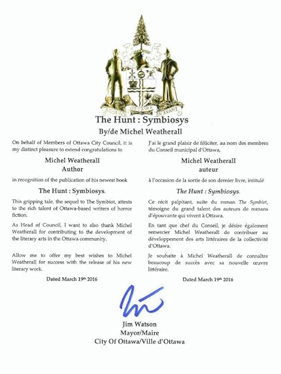 Book Signing   Saturday, March 19th, 2016 11 am - 2 pm Coles, Carlingwood Mall 2121 Carling Ave. # 23 Ottawa, Ontario 613-725-3284   Come down, get one of my books signed and meet me!         The Symbiot   "In the Symbiot, Weatherall has created a spine chilling tale reminiscent of the style of Stephen King" TDC Book Reviews "One man's musical passion leads on a temporal hunt through a Lovecraftian world on a collision course with extinction! Reminiscent with Guy de Maupassant's The Horla" 'Seph