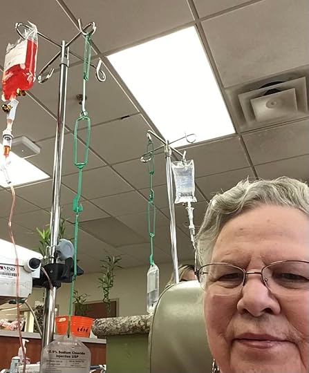 I opened my eyes and looked up at the red liquid in the bag. Suddenly I had peace. Now I saw the red liquid differently. It represented the cleansing blood of Jesus, cleansing me of the cancerous tumors in my body. Joy filled me! I no longer have fear. I believe God is healing me one day at a time. I have hard days, but I’m no longer in a hard place. All glory is the Lord’s. I praise God for each day He gifts me with, and share His love with all who need to hear of it!