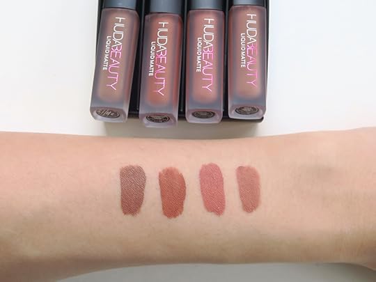 HUDA BEAUTY-Liquid Matte Minis有出四種色系一組各四隻,分別是裸色、紅色、粉色、棕色,但裡面有部分為重複款式,所以四組並未包含全色系的16種顏色,技巧性的保留部分色號還是只有單賣款。