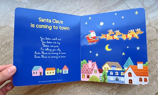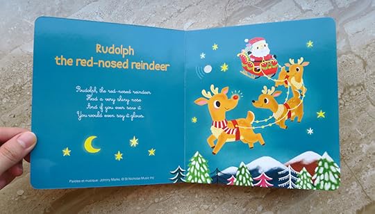 每頁都是一首歌,按下按鈕會播放可愛的音樂,繪製時用了比較鮮豔的顏色,收到成本印刷地挺好的,加上上了亮膜顏色非常亮麗,個人很喜歡「紅鼻子馴鹿魯道夫」,覺得這個故事真的超級可愛,發亮的鼻子在夜空中閃爍,也很有童話畫面感。