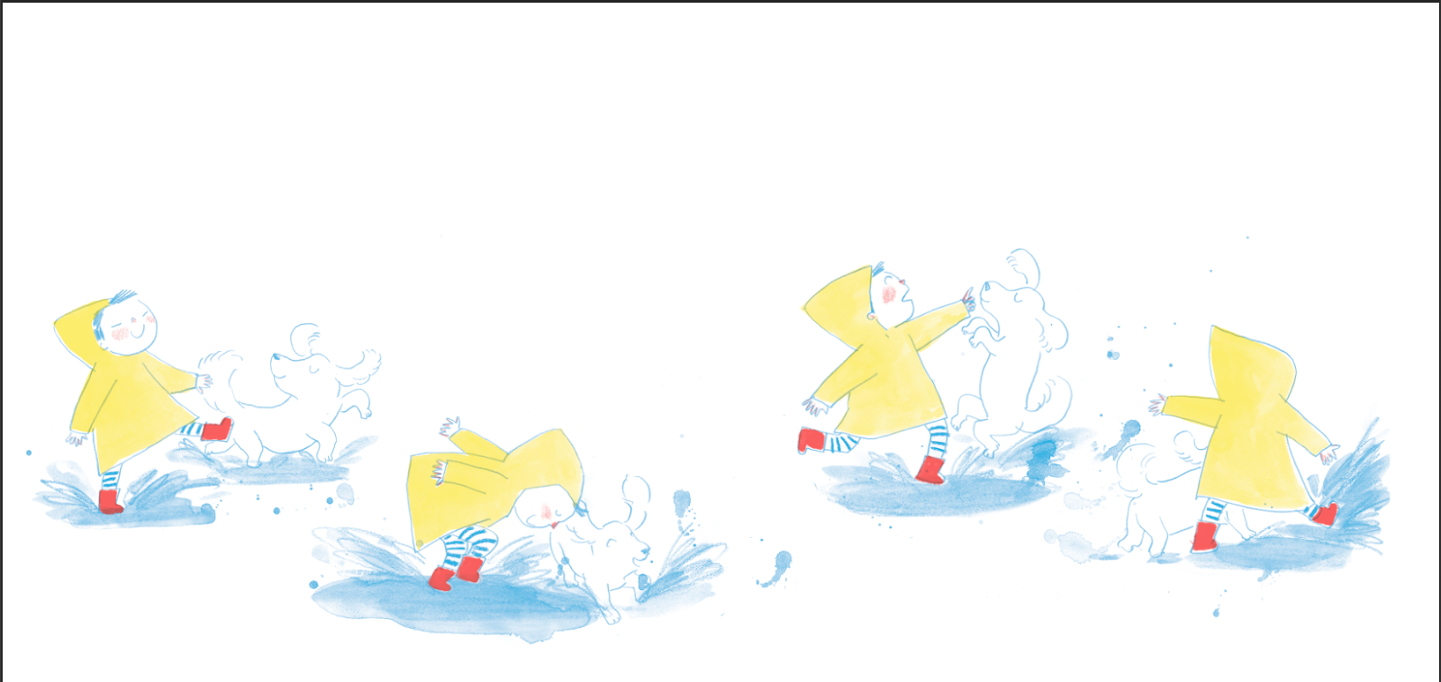 It started 3 years ago, when I spent most of my time with my 2 year old son. It was one of this rainy day, we finished our routines long time ago, had snacks twice already, looked out of window so many times, and it was still raining. So we decided to draw "the rainy day". Well,actually I drew, and my son's eyes followed my drawing and he laughed, surprised and pleaded. That was the moment which become this book PUDDLE.