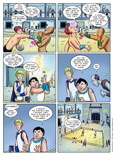 I’m taking all these disparate elements about the foundation of Rome and spinning it in my own Kid Beowulf fashion. For me that’s looking at the relationship between Romulus and Remus and how that mirrors Beowulf and Grendel. And then throwing in sword and sandals elements as a nod to those great movies like Spartacus and Gladiator. If you’re going to go to Rome, people want to see some of those elements – or at least, I wanted to play around with those tropes.