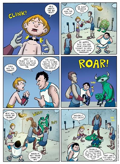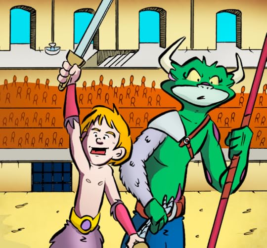 In this action-packed graphic novel, twin brothers, Beowulf and Grendel are lost in ancient Italy, trapped as slaves who must fight for their freedom in the gladiatorial games. There in the arena the brothers will battle fearsome warriors, deadly beasts, and meet another pair of twins, Romulus and Remus. It all leads to the founding of the world’s most epic city: ROME!