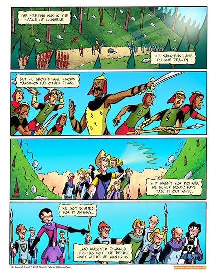 Part of the Kid Beowulf Eddas series, Paladins Tale is a short story that takes place during the events of book two, The Song of Roland. There is a one page sequence in the book when Ogier the Dane tells his nephews, Beowulf and Grendel how he and the other Peers were betrayed, ambushed, and eventually thrown in prison for high treason.