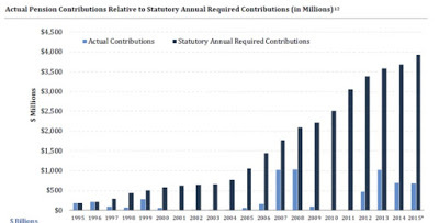 Looking ahead, for the state's fiscal year 2017 beginning on July 1, the Governor has proposed $1.86 billion in pension contribution, or just 40% of its required annual contribution. And while this may help the state balance its 2017 budget, the state's pension mountain continues to rise before New Jersey public employees and cast an ever-greater shadow over its taxpayers.