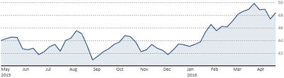 Those who read my post from early January, "What's Working in this Market Correction", will know I favor utility stocks in the current market. In fact, the utility ETF, XLU rose from 43 on January 4 to 50 on March 28, or a gain of 16% in 12 weeks. It's since backed off, now trading at 48. I'll explain why in a moment. First, why I like utility stocks and what their performance this year says about the economy.