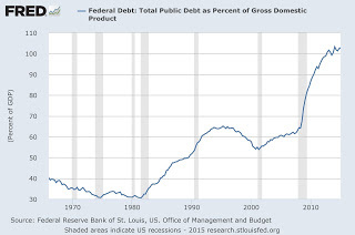 With current law unchanged, the CBO projects that total federal tax revenue will grow as a percentage of GDP from 17.7% in 2015 to 19.4% by 2040. At the same time, federal spending is projected to grow from 20.5% of GDP in 2015 to 25.3% in 2040. And therein lies the rub. Expenditure growth at rates considerably in excess of that of revenues. I guess you could say the government loses money on every dollar and can't make it up on volume.