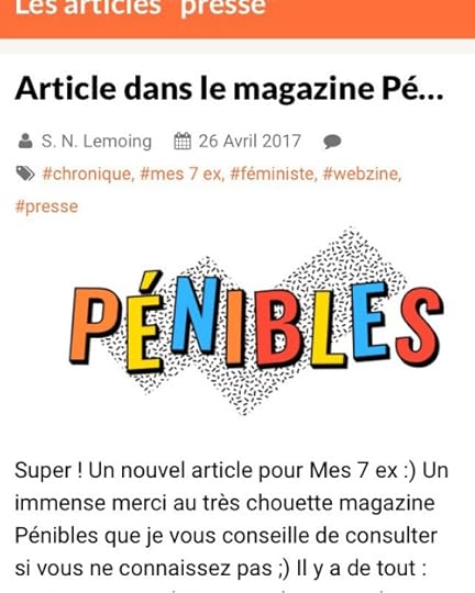 Super !Un nouvel article pour Mes 7 ex :)Un immense merci au...
