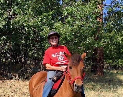 Barb is a woman of a certain age, but always lively, with the brightest eyes and a quick laugh. She’s had a lifetime of experience, all the best and worst things have happened, and she’s survived with a kind heart, strong political opinions, and a great sense of humor. Barb refers to herself as The Elderly Cowgirl. I wouldn’t mind if younger horsepeople demonstrated her version of “elderly.”