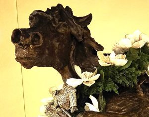 Perhaps I’m upped my game to being the loudmouth Grinch party-pooper, a redundant title, I’m sure. How often do we ignore a horse’s emotions or normalize their pain? Sure, just a statue in front of a hotel, but isn’t that what normalizing means? Egads. This sculpture looked as tortured as I felt. Now my emotions started to wring their tail, just as the limo pulled up. Oh, put a wreath on it, I thought as I got in and asked the driver to hurry.