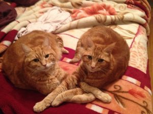 9/19/14 Weather variable, date whatever. Dear Diary, only in your kindly pages would I disclose what I am about to say. So glad I have you to talk to, Diary! Okay, here it is: Though I am a most dominant and daring cat in the areas of food-stealing and sneaking outdoors – an example for all cats to follow – for some reason sleeping spaces are different. My brother Venchy is pulling his ‘corporate takeover’ again. He sits on the strategic corner of the big bed at night and tells me, “Karima is MY mommy, NOT your mommy! You can’t be in here, you have to go away!” And to my shame, I do. I skulk away and sit at the bottom of the stairs wearing my sad-old-man face. If Karima figures out this has happened, she comes and gets me, but still . . . Diary, I’m so glad I have you to confide in, as I would not want anyone else to know. – F. Lumpkin (a.k.a. Benjamin Felinus)
