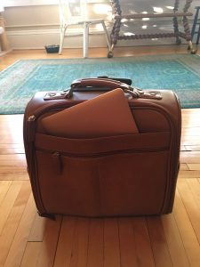 The laptop was supposed to fit into a Special Slot on the side of the suitcase– the reason, other than its luxurious beauty, that the little suitcase had been bought in the first place. The purse was supposed to occupy the interior of the case, along with a lot of other stuff. This worked as long as there was an elephant around to sit on it.