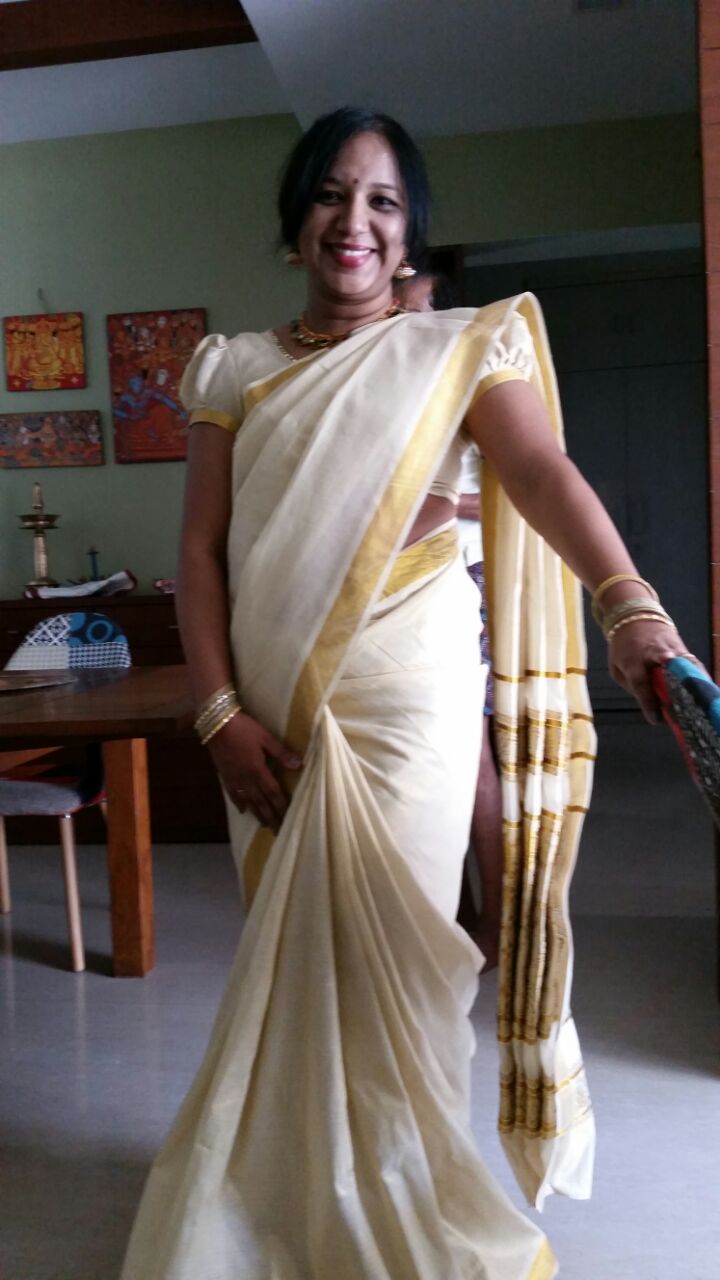 Onam 2016 SelfieThis Thiruvonam (main day of Onam), I was dressed in traditional Kerala sari with that red & green necklace and matching jhumkas which I think every Malayalee girl would possess. As I was waiting for my friend I reminisced about my Onam celebrations of old.