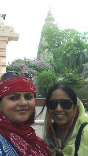 houses the Bodhi tree where Lord Buddha attained Nirvana / Enlightenment. In and around the tree, you can see monks and other people in deep meditation; we tried to do that to no avail because we were frequently distracted by the guides (maybe self-proclaimed) telling us stories without request. My friend Hetal got a leaf from the Bodhi tree from one such enthusiastic guide; she has been asked to put the same in a book which she has immediately after coming home from this trip.