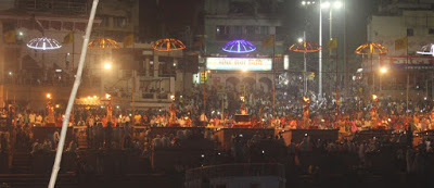 Dashashmawedh GhatYou need to be suitably rested before 5:30 p.m. so that you can get to Dashashmawedh Ghat for the spectacular viewing of the aarti by seven priests. You could take a rickshaw to a point from where there is a walk of about a km to this ghat or you could simply take the boat again. Our boat was parked in between Dashashmawedh Ghat and nearby Sitla Ghat so that we could view the aarti at both places. Children sell flowers and diyas which you can light and float into the Ganga. The sight of the flowers and diyas floating in the Ganga at night is spectacular. I want to also say that pictures or videos cannot do justice to the live feel of the aarti. The synchronized aarti by the priests overwhelm and leave you spell-bound.