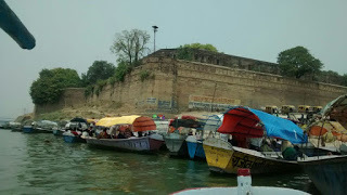 Our kevat then pointed to a gigantic fort in the distance. He recounted as to how Emperor Akbar conquered Prayag and built the Allahabad fort at the banks of the Triveni Sangam. He rechristened the city to Illahabad (where Allah resides). His Hindu bride spent quite a lot of time in this fort and the Patalpuri temple which is housed inside the fort.