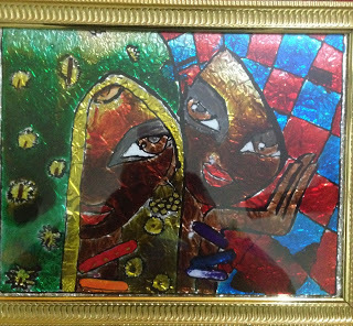 Shalini' painting depicting our friendshipThis birthday was a ‘surprise’ in that I did not have the normal birthday thingeys like cake cutting or partying. One of my besties – Sanjana, did surprise me though by spending the entire day with me doing the mundane stuff; her company coupled with the numerous phone calls with best wishes all day made it special though. The birthday party was planned for the weekend @ my other bestie – Shalini’ place. I was curious to find what they had planned but Sanjana who was driving me over did not seem to have anything in place really; I mean I was expecting at least a birthday present. Maybe Shalini was in charge of the presents, I thought to myself. The aroma of Kerala ‘sadya’ (multi-course meal) wafted through my nostrils as I walked in through the door of Shalini' house. I felt soooo ‘happily’ hungry because this is one of my favorite cuisines; it is an elaborate preparation so I was pleasantly surprised & happy that they had made all that effort just for me. Shalini had baked a chocolate cake. They sang the birthday song for me as if I blew the candles; I felt like a little child. The theme of the party was