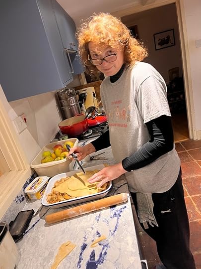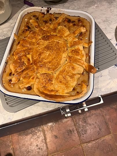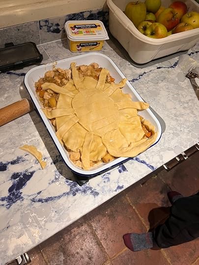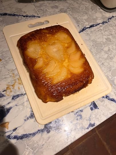 Fellow guests Patrick Willems and Sarah Welch-Larson took up the challenge with aplomb. Me? I can’t cook or bake for toffee, so I called in an expert: namely my wonderful wife Claire. She made two magnificent face-hugger recipes. The Invasion of Pot Pies and the Pear and Cardamom Upside Down Cake (photos below…) and they were very yummy indeed.