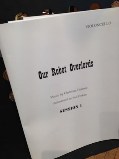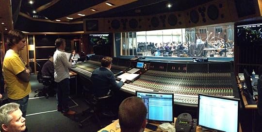 When I arrived at 9.30 most of the musicians were assembling and getting ready. I found Paddy in the studio cafe and we made our way to the sound-proofed control room room. Christian Henson (composer) and his team were raring to go. He gave a short introduction, explaining that we only had the budget for one day of recording, and there was lots to do, and then they were off.