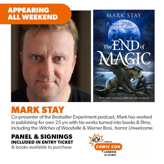 I’ll be at the MCM Comic Con in London all weekend, flogging and signing my wares! As well as the Witches of Woodville books, I’ll also have paperbacks of The End of Magic with the new artwork by Alejandro Colucci, and maybe a few surprises!