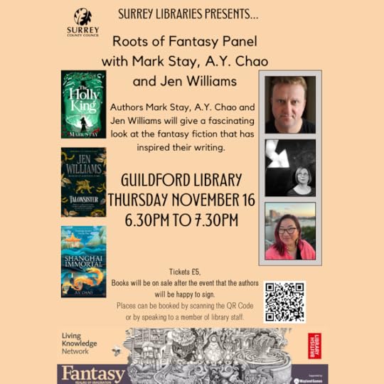 Join me and Jen Williams and AY Chao at Guildford Library this Thursday
