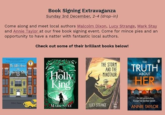 We had so much fun last year, we’re doing it again! Some fab local authors will be signing books for Christmas gifts (or why not treat yourself?). There will be mulled wine and mince pies!