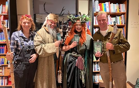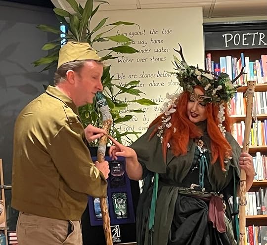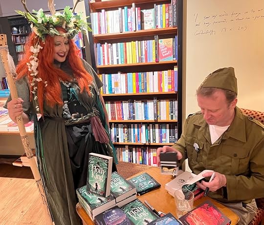 Had an amazing night launching The Holly King at Waterstones Canterburytonight. A huge thank you to everyone who came, to Claire for the cakes, Emilyfor the photos, and Merlin and Katie (aka Raven) for looking so amazing and for their incredible gift of a Holly King staff. And thanks of course to Martin and the gang at Waterstones! Still buzzing.