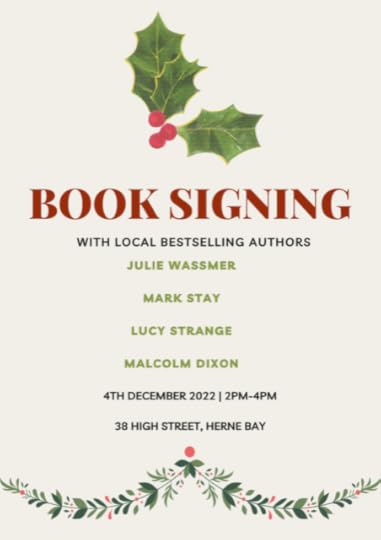 I’ll be signing books at the The Little Green Bookshop’s special Christmas Shopping Day. I’ll be joined by some amazing authors, including Malcolm Dixon, Lucy Strange and Julie Wassmer, which means there’s something for everyone and you can sort your Christmas shopping in one go, and enjoy some mince pies and mulled wine in the process! Hope to see you there…