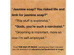 If you know someone who loves a bit of fantasy but doesn’t relish the idea of shopping online then do please ask them to drop me a line here and I’ll do everything I can to help. Until next week, here are some choice words from the book…