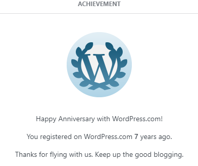 In November 2020, WordPress sent me a badge for being with them for seven years. Look at that! Seven years of toil and inconsistent posting and I earned a badge!