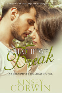 Hello! Here I am with author Kinsey Corwin. I met Kinsey through my publishing company Clean Reads and invited her on to talk about her new release, What if We Break. This Holiday themed short novel seems to be just what the season ordered. I, myself, am eager to learn more about it. Kinsey has also offered a Kindle e-copy of the book as a giveaway (see below for details on how to enter). So, without further ado, let’s check in with Kinsey.