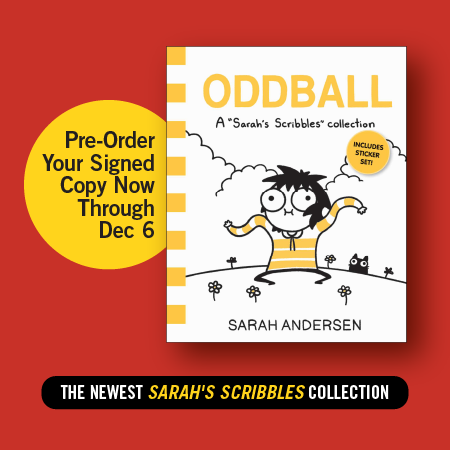 This is the fourth Sarah’s Scribbles book, and with this collection I return to the original format of my first book, “Adulthood is a Myth”. That means that this book is made up entirely of short form comics. “Oddball” explores the strange; I worked with characters like Medusa, Dracula, and even biblically accurate angels to tell jokes in a new light within the Sarah’s Scribbles universe.
