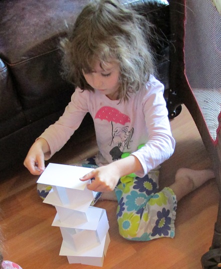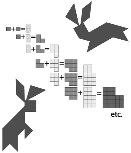 We spent the next hour playing with the Fibonacci sequence (using crackers) and making patterns out of Tangrams. That's what I love about "Let's Play Math"; This book not only gives parents ideas for making mathematics fun for children, but it also provides concrete examples that foster a family culture of enthusiasm around math. At our house, playing with math as a family is just part of life.
