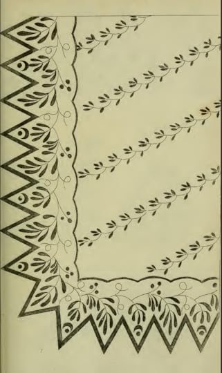 No fabric samples this month, but the issue does end with some intricate embroidery patterns of vines. The star and heart shapes of the second pattern seem unusual for the period; I wonder if the pattern was much reproduced?