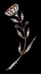 • Diamonds and pearls “must always retain their pre-eminence,” but “bracelets of wrought gold, or of colored enamel, to represent small natural flowers” are also in style