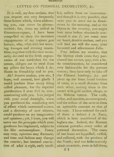 After reading Julia’s letter, do you think you’d know enough to dress yourself to meet 1813’s fashion demands?