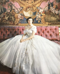 Since my French character Arlette LaRue in The Golden Doves is a budding fashion designer and is inspired by Christian Dior, I had to find the perfect wedding dress for her and was inspired by a cream Dior dress Princess Margaret wore for her 21st birthday in 1951.