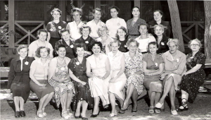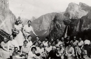 This photo of the Polish ladies known as the Ravensbruck Rabbits was taken in California during the trip, thirteen years after their liberation from Ravensbruck. From left rear: Władysława Marczewska, Janina Marczewska–Sterkowicz, Jadwiga Kukiela, Wacława Andrzejak-Gnatowska, Joanna Szydłowska, Maria Karczmarz Łysakowska. Middle row: StanisławaMłodkowska-Bielawska,MariaPietrzak-Skibińska, Stanisława Czajkowska-Bafia,JadwigaDzido-Hassa,WandaKulczykRosiewicz,MariaKuśmierczuk,PelagiaMaćkowska. First row from left to right: Maria Grabowska, Helena Hegier-Rafalska, Czesława Kostecka, Genowefa Kluczek-Kacka, Aka Chojnacka (who lived here in California), Władysława Karolewska-Łapińska, Jadwiga Gisges, Stefania Łotocka, Stefania Sieklucka, Leokadia Kwiecińska