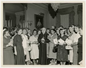Cardinal Spellman grants the Ravensbruck Rabbits a private audience.