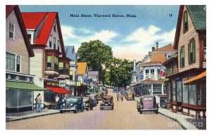 Much of the book takes place, past and present, in Vineyard Haven, one of the two port towns on the Island, where my parents lived. Love this old view of Main Street. It’s not that different today: